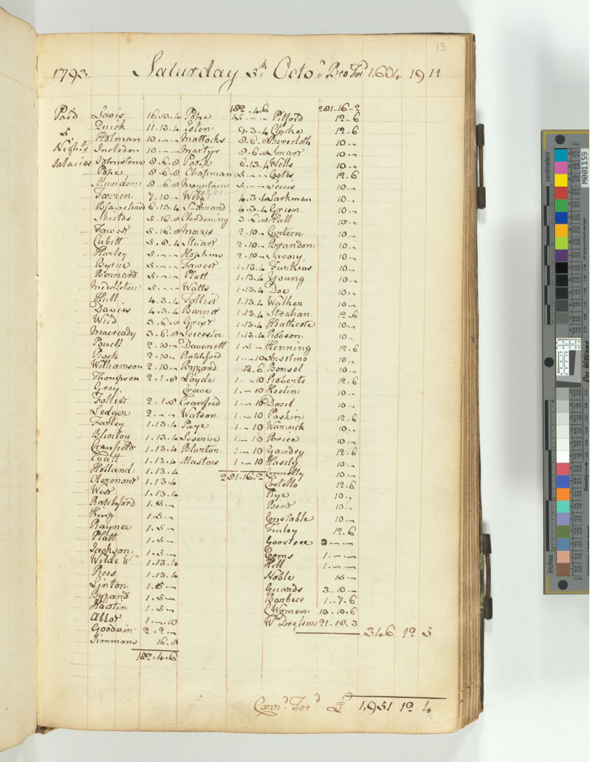 The increasing density of the account books, particularly around Saturday payday, reflects the theatres’ growth in size and complexity as the century progressed.